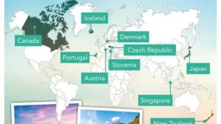 アイスランド、ニュージーランド、シンガポール、日本、デンマーク、スロベニア、オーストリア、ポルトガル、カナダ、チェコ