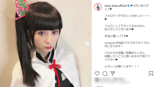 20年8月21日のブログで「(インスタグラムのフォロワーが)10万人いったら栗花落カナヲちゃんのコスプレを投稿します!!!」と投稿していた生田さん、13日に10万人超えの公約として、インスタグラムとブログにコスプレ写真を投稿した。ブログでは、「初めてしたから。。。本当に投稿するか悩んで。。。理想もあると思うし!!でもみなさんがおめでとうと言ってくれて本当に嬉しかったです!!!ありがとうございます!!!これからも頑張ります!!!!!」ともつづっている。