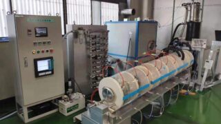 その後、真空の横型ドラムの中を移動し乾燥させる。