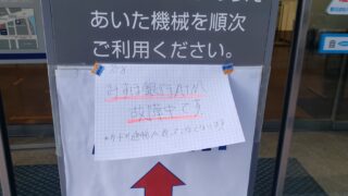 また利用客同士で、「今使わないように」と呼びかけ合ったり、銀行前に即席の貼り紙をしたりしているという。