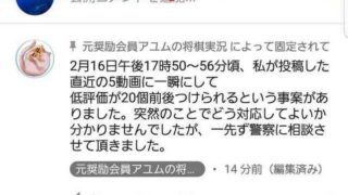 動画に低評価を20個も付けられる悪質な嫌がらせを受けた模様……