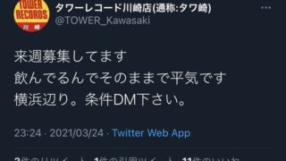 タワーレコード川崎店が公式ツイッターにとんでもない誤投稿を行ってしまった。