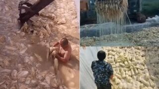 裸の男が下半身を白菜の山に埋めて作業をし、その近くではショベルカーが白菜をかきまわす――。韓国では3月から、中国でキムチを作る様子とされるこんな映像や写真が拡散し、
