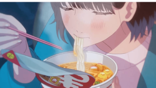 女性が部屋でテレビを見ながら「赤いきつね」を食べているアニメ。ドラマに感動し、泣きながらウマウマうどんを食べている、ただそれだけ。それを「エロい(怒)」とバッシングしている人たちがいるそうで……えっ?