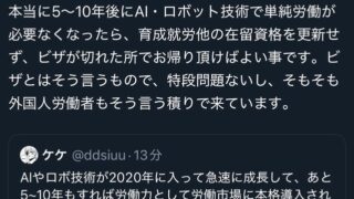 まあホワイトカラーがある程度人員削減できても5〜10年で移民が不要になることはないロボット技術はテスト段階とか色々ありそうやし