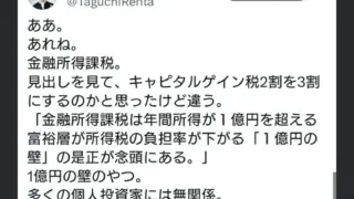 【悲報】高市アンチ敗北へ「金融課税は年間所得1億以上の富裕層だけ」