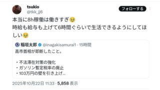 【悲報】高市早苗「労働時間規制緩和」支持者「これはサナちゃんGJ!今の労働時間は長すぎる」