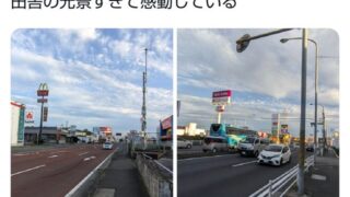 田舎の幹線道路沿いだね 車持ってない都会の貧乏人には見えない光景