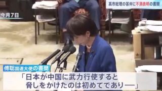 中国の国連代表部によりますと、書簡では高市総理の発言について「日本が中国に武力行使すると脅しをかけたのは初めてであり、中国の核心的利益を挑発するものだ」と強く批判。