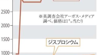 英調査会社アーガス・メディアがまとめた中国国外の価格指標となる欧州のジスプロシウム価格は、4月1日に1キログラム280ドル(約4万4千円)だったが、5月1日には850ドルに急上昇した。その後も値上がりを続け、12月11日には920ドルに達した。