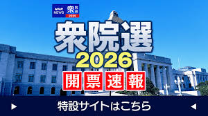 【速報中】衆議院選挙2026 自民党が単独で過半数大きく上回り300議席に達する可能性 中道 大幅減の情勢 | NHKニュース | 衆議院選挙、選挙、衆議院