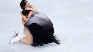 2人はスケーティングの技術などを示す演技構成点でも高い評価を得てフリーの得点は158.13と、歴代最高得点をマークし、合計は231.24で前半5位から巻き返して逆転での金メダルを獲得しました。