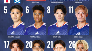 日本代表は28日、キリンワールドチャレンジでスコットランド代表と対戦する。午後5時(日本時間29日午前2時)のキックオフを前にスターティングメンバーが発表され、MF鈴木唯人、MF佐野航大、FW後藤啓介ら若手選手が先発に抜擢された。