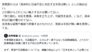 レアアースが止まって今度は原油が止まるけど高市はどうみても疫病神でしょ