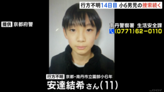 南丹市立園部小学校6年の安達結希さん(11)は先月23日の朝、父親の車で学校の近くまで送り届けられたのを最後に行方がわからなくなっています。