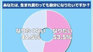 10代・現役高校生を対象としたマーケティング情報サイト「ワカモノリサーチ」は、令和の現役高校生に「あなたは生まれ変わっても自分になりたいですか?」というアンケートの調査を実施。「(自分に)なりたい」と「(自分に)なりたくない」の2択で回答をしてもらったところ、「(自分に)なりたい」と答えた高校生は53.5%、「(自分に)なりたくない」と答えた高校生は46.5%という拮抗した結果となった。