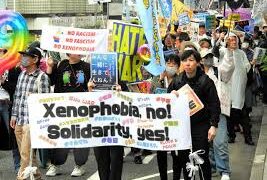 関西で在日外国人を支援する市民団体や弁護士らが呼びかけた。北区の中之島公園に約400人が集まり、「差別をやめろ」「人権を守れ」などと声を上げながら、市街地を行進した。