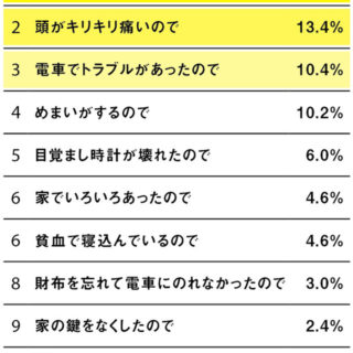 生活 寝坊して遅刻した時の言い訳ランキングwwwww
