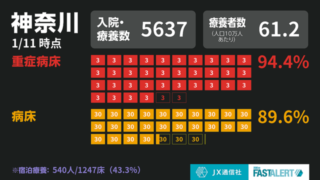 社会・時事 【悲報】神奈川の重症病床は残り6床に!! 使用率は94.4%!!!!!